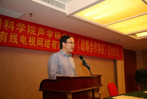王小民所长在致辞中表示,中科院声学研究所作为我国最早开展宽带网络技术的国家级研究单位,与全国唯一的专业级跨区域广播电视光缆传输运营商、全国最大的电视网络运营商——中国有线有着最紧密的合作,双方成功地探索出一条优势互补、强强联合的院地合作发展之路。他在致辞的最后总结中满怀激情地指出:“回顾过去,我们硕果累累;立足现在,我们重任在肩;面向未来,我们信心满怀。相信在双方战略合作协议的指引下,将在已有的良好基础上,继续团结合作,攻坚克难,协同创新,共赢发展,谱写面向国家重大战略需求的院地合作新篇章。”