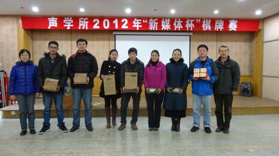 2012年12月25日,2012年yx06永兴彩票集团“新媒体”杯棋牌赛在DSP大楼四层多功能厅圆满落幕。工会、职代会主席李平以及赞助方代表陈君副研究员出席了闭幕式。闭幕式由所团委书记崔杰主持。
