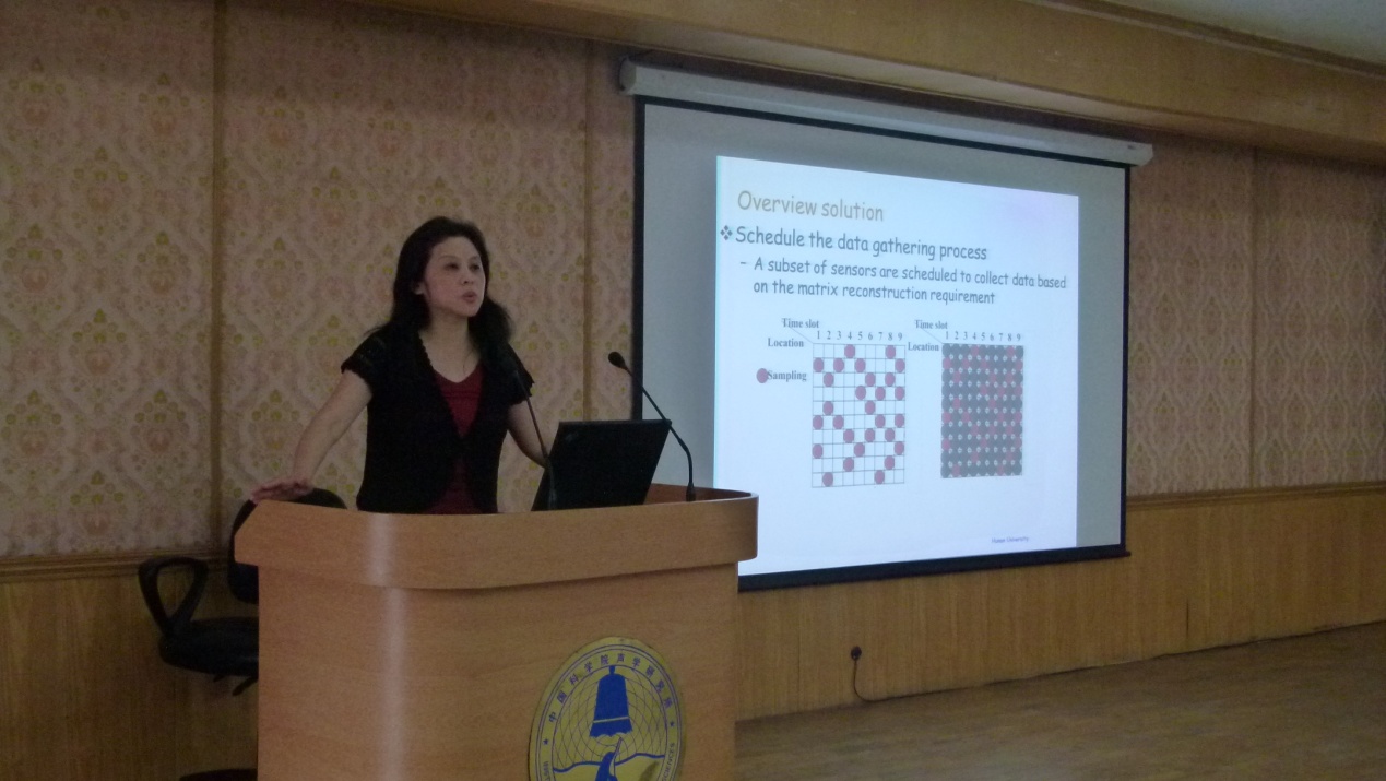 2014613日上午,应国家网络新媒体工程技术研究中心邀请,美国纽约州立大学石溪分校电子与计算机工程系无线网络和系统实验室主任王欣副教授访问yx06永兴彩票集团,并在DSP多功能厅做了题为“Sparse On-Line Data Collections in Wireless Sensor Networks based on Matrix Completion”的学术报告。报告会由中心副主任邓浩江研究员主持,副所长倪宏研究员、中心主任王劲林研究员以及yx06永兴彩票集团相关的研究人员、研究生听取了报告。