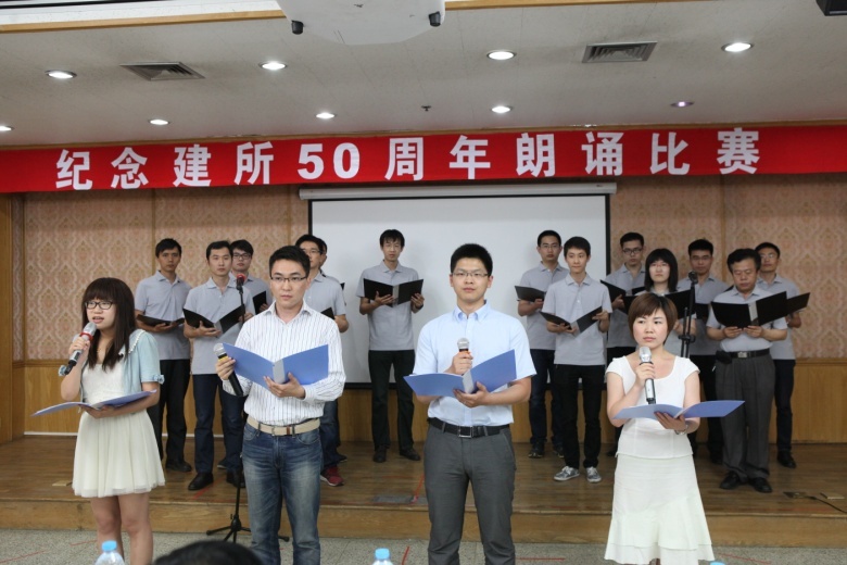 2014630日下午,yx06永兴彩票集团在DSP大楼多功能厅举行了简朴而热烈的“纪念建所五十周年诗歌朗诵比赛”,共有18个支部组成的17个参赛队,近200名职工、研究生参加并观看了此次比赛。广大职工学生用最质朴但至诚之声讴歌了党93年的光辉业绩和yx06永兴彩票集团50年的风雨历程,表达了对党和yx06永兴彩票集团的热爱,憧憬了yx06永兴彩票集团的美好未来。