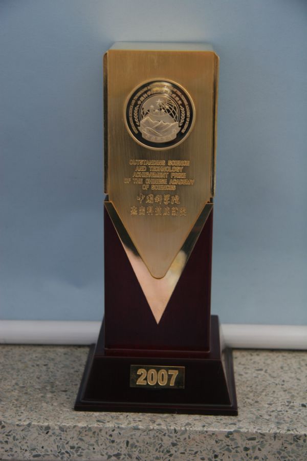中国科学院杰出科技成就奖于2002年设立,设立该奖项的宗旨是为了适应新世纪科技发展的需要,深入贯彻落实新时期办院方针,进一步激励科技工作者的创新精神,鼓励为人类科技事业做出重大贡献。该奖项授予院属单位在近五年内完成重大成果的个人和集体,每两年评选一次,每次不超过十项,2003年首次颁奖。今年为第三次颁奖,共有七个单位和个人获奖。
