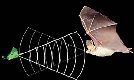 蝙蝠通过喉咙发出高频声波,之后利用耳廓接收和处理各种回波信号,实现了复杂背景下的目标探测、识别和定位,并不断利用回声定位导引自己在飞行中避开障碍物和捕获猎物。为此,蝙蝠进化出了有利于发射和接收声学信号的特殊生理结构,如鼻叶、脸上的皮肤褶皱以及复杂的大耳廓。蝙蝠可以在1秒钟内接收和处理200多组回波信号,并通过改变飞行路线的方式来应对猎物的回波起伏。