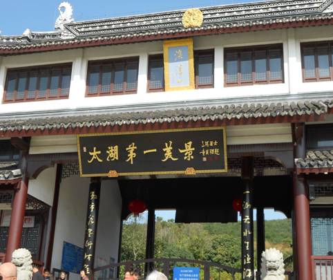 下车后跃入眼帘的便是“太湖第一美景”的牌匾。听导游介绍,苏州的渔洋山因伍子胥报恩而得名。相传伍子胥过昭关之后,曾经得到一位老渔民相救。伍子胥在吴国功成名就之后,为了感恩把老渔民的子孙后代接到吴国,并安置在渔洋山。无巧不成书,渔洋山就有一处天然涌泉,从而印证了“滴水之恩,涌泉相报”的传统美德。