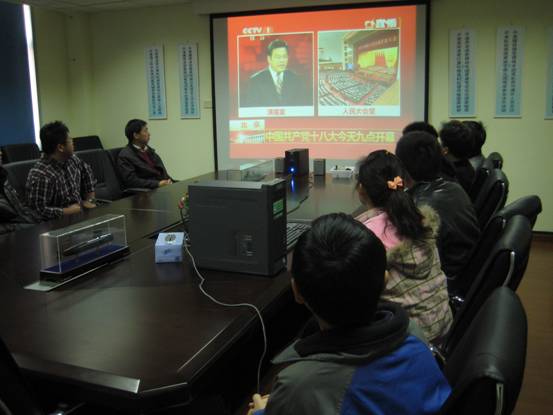 为响应所党委号召,增强基层党组织政治意识、大局意识和责任意识,11月8日上午9:00,微弱信号检测与处理实验室组织全室党员、群众在德昭楼508会议室集体观看党的十八大开幕式盛况,认真聆听了胡锦涛总书记在大会上作的报告。