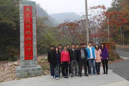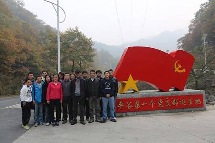 该次“参观党史基地,重温红色记忆,缅怀革命先烈,接受爱国教育”活动时间为2012年10月26日,活动地点是北京市平谷区桃棚村的冀东抗日根据地旧址和天津蓟县史各庄的史各庄惨案抗日纪念碑,参加人员是为本实验室的学生、职工共17人。