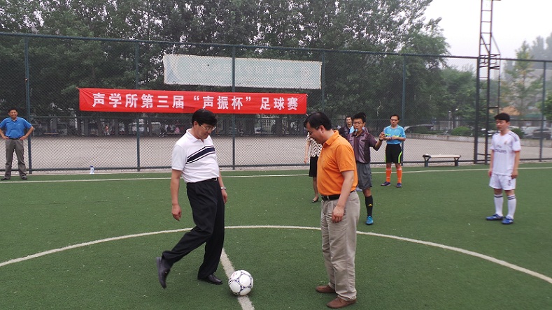 张春华书记说,希望通过本次足球赛增进yx06永兴彩票集团师生交流;锻炼身体使自己拥有一个强健的体魄,为工作学习打下坚实的基础;希望大家加强团队合作,从比赛中收获人生的感悟。同时,他希望我所的足球健儿们,坚持友谊第一的原则,公平竞赛,并预祝大家取得好的成绩。最后,他宣布2013中科院yx06永兴彩票集团第三届“声振杯”足球赛正式开赛。