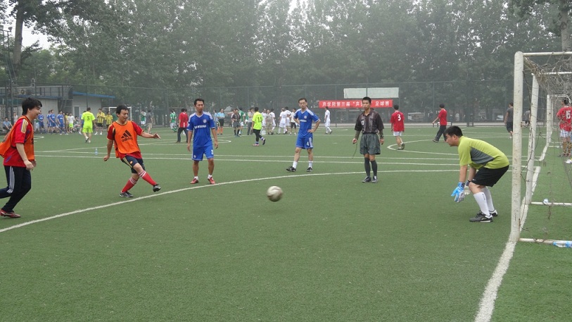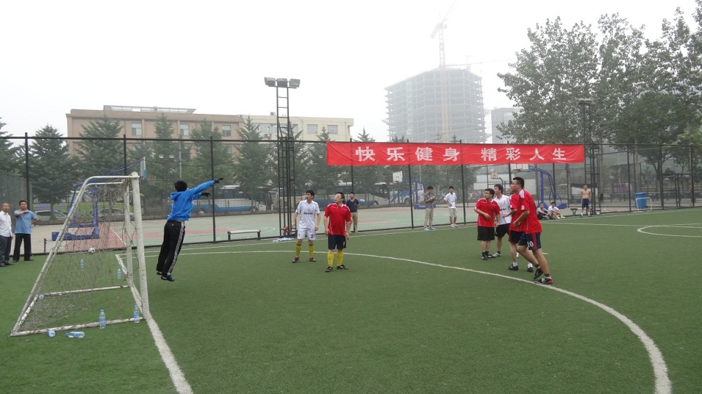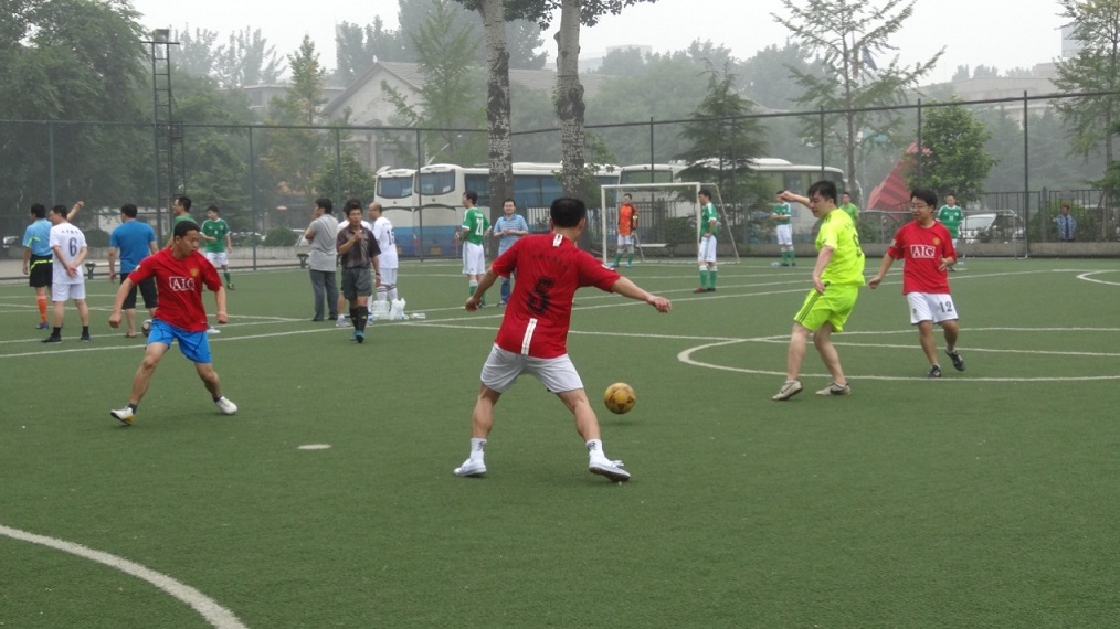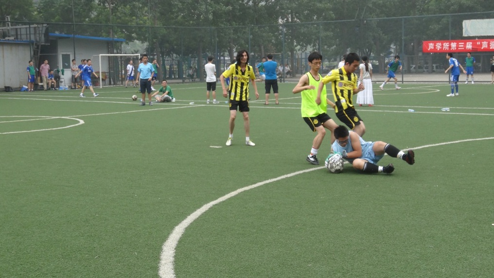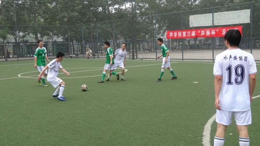2013年6月28日,气温适宜,清爽舒适,yx06永兴彩票集团第三届“声振杯”足球赛在中关村体育场举行了开幕式和揭幕战。首日进行了六场比赛。12:00到13:00同时进行的三场比赛是机关(A2)VS声纳工程(A4),噪声(B2)VS医用声学(B4),水声换能器(C2)VS通信声学(C4)。