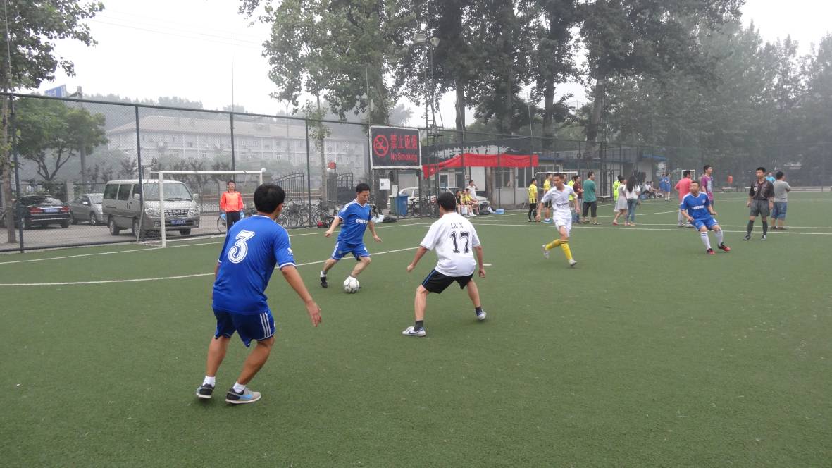 尽管天气闷热,但各支队伍斗志不减,早早来到了足球场进行热身运动。首先进行的三场比赛是,机关联队VS高性能网络队,声学智能制导队VS噪声队,综合声纳&语言声学联队VS水声换能器队。六支队伍实力都比较强劲。