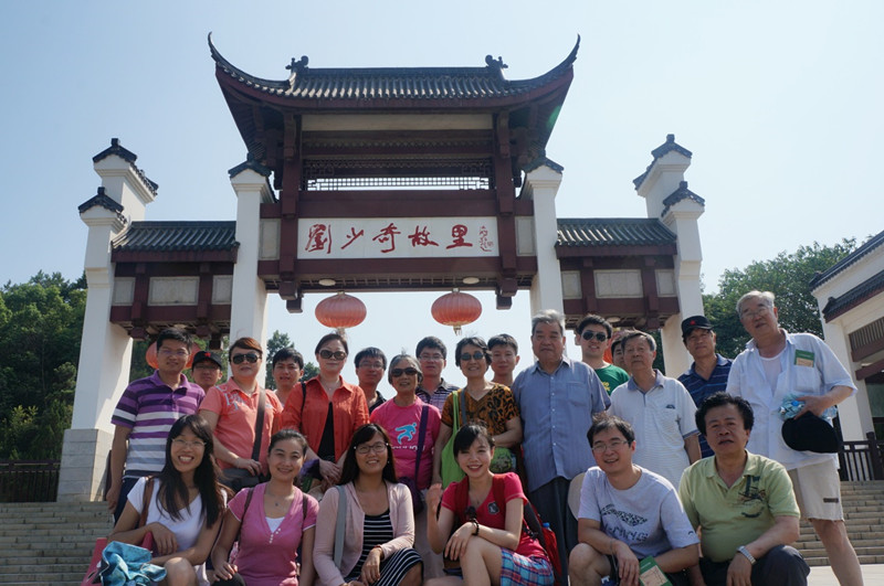 第二天上午同志们来到了刘少奇同志的故里宁乡县,参观了刘少奇同志的故居及花明楼。位于炭子冲的刘少奇同志故居在房屋结构及陈设上与毛主席故居十分相似,保留着100多年前南方普通民居的建筑风格。故居背靠苍松翠竹,面临荷花池塘。置身于经历了一个多世纪风雨沧桑的故居中,我们也感受到了刘少奇同志的辉煌而坎坷的一生。伟人们为了中华名族的复兴而奋斗终生,忍辱负重的精神气概将时刻激励着我们。