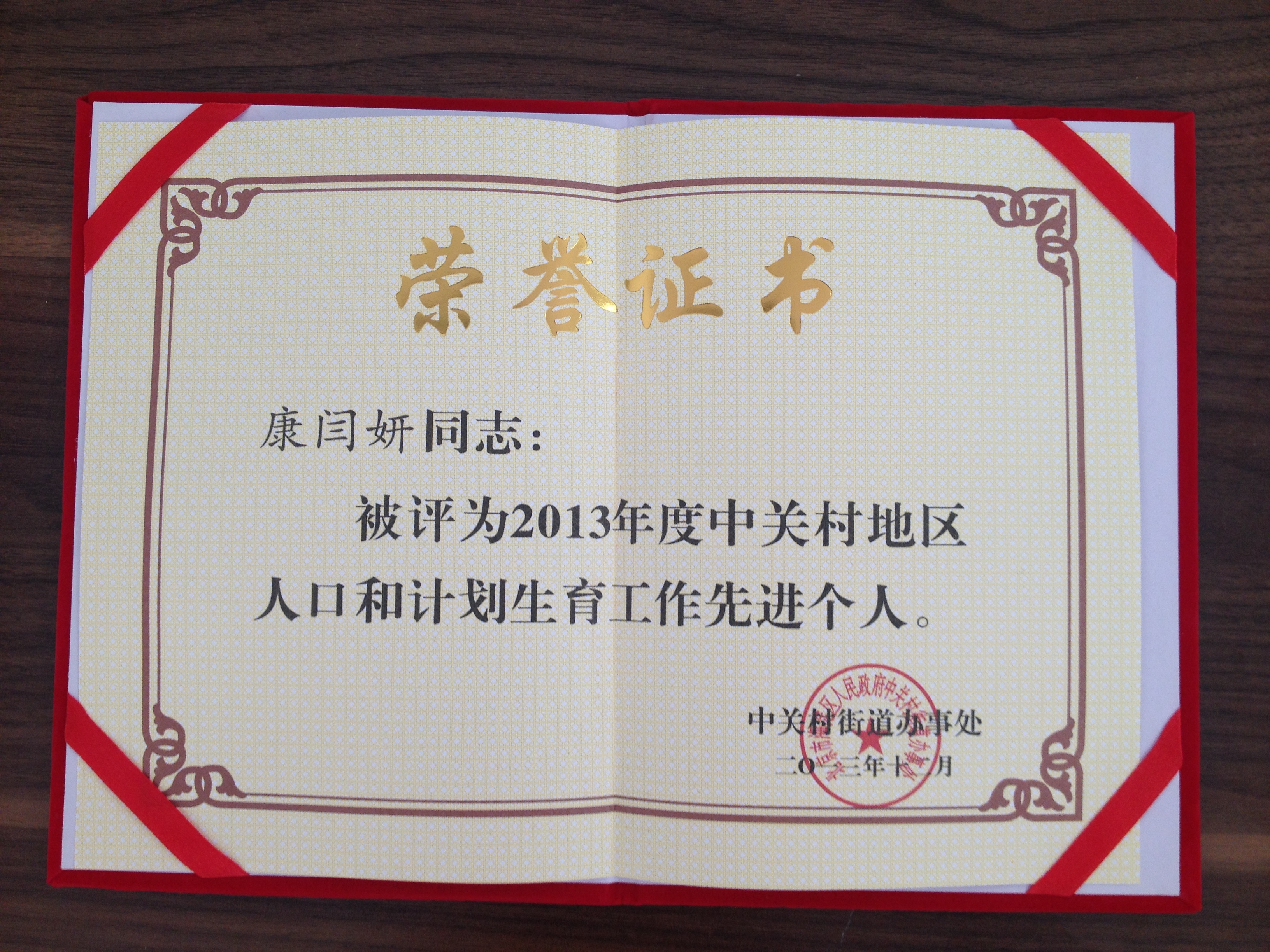 日前,yx06永兴彩票集团被评为“2013年度中关村地区人口与计划生育先进单位”;张春华书记被评为“2013年度中关村地区人口和计划生育工作好领导”;康闫妍同志被评为“2013年度中关村地区人口与计划生育工作先进个人”。