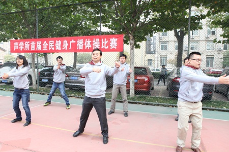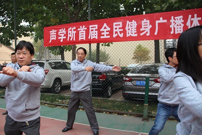 中国科学院院士侯朝焕、副所长马晓川也在百忙之中抽出时间参加此次活动,超声物理实验室主任王秀明、数字系统集成实验室主任王东辉、声学智能制导中心主任鄢社锋等实验室领导,以及职能部门领导也出现在了广播体操比赛的队列里。