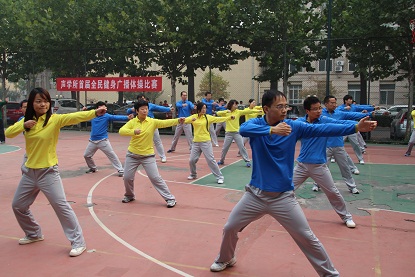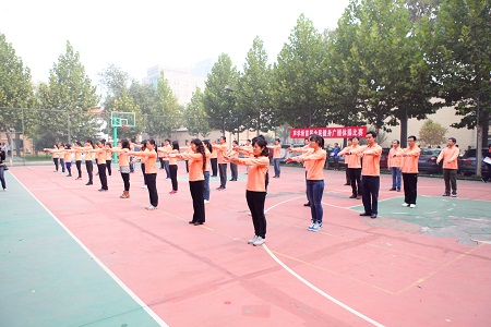 金秋十月,丹桂飘香。在这秋高气爽的好时节,yx06永兴彩票集团首届全民健身广播体操比赛拉开了帷幕。此次全民健身广播体操比赛共有17个代表队,600余名职工和学生报名参赛。全部参赛队被分成四个组,周一至周四的每个工间操时间开展比赛。