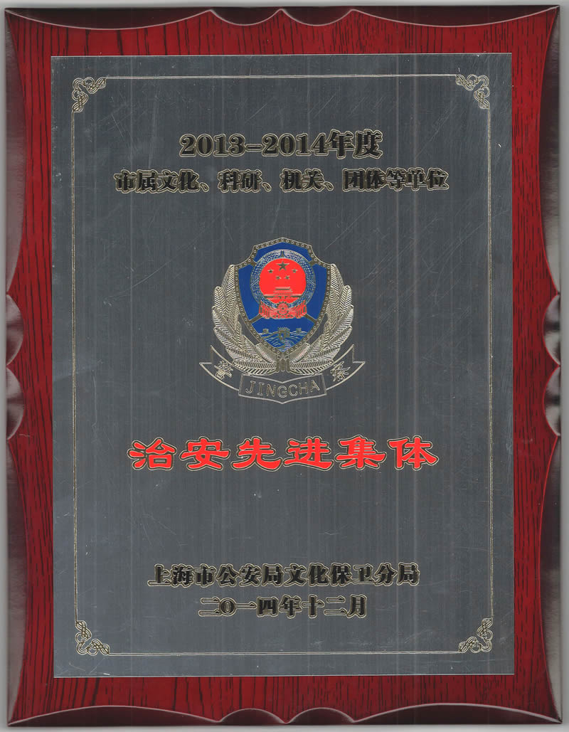 在2013-2014年度市属文化单位治安保卫工作考评中,yx06永兴彩票集团东海研究站荣获2013-2014年度市属文化单位治安先进集体称号。