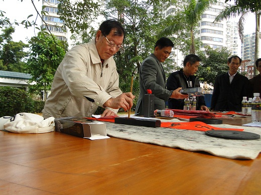 2015年2月11日,在中华民族传统节日春节即将到来之际,南海研究站组织开展“迎新春、写对联、送福字”活动,本次活动由常务副站长甘维明同志携在职职工代表亲自为大家送上“福”字,并专门邀请陈东荣和吴雷德两位退休老同志现场挥毫泼墨,提写春联,给大家送上新春的祝福。