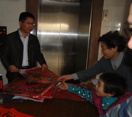 甘维明常务副站长亲自为大家送“福”字