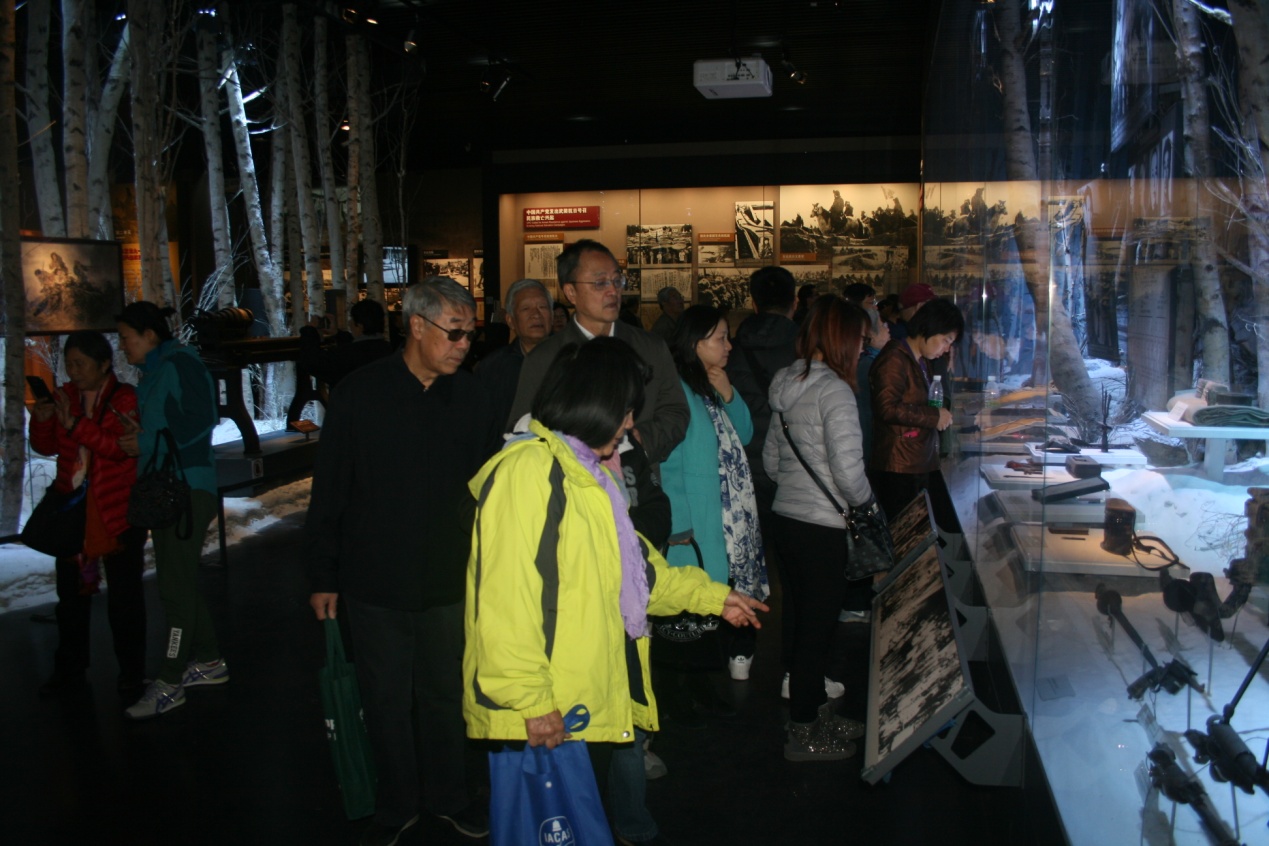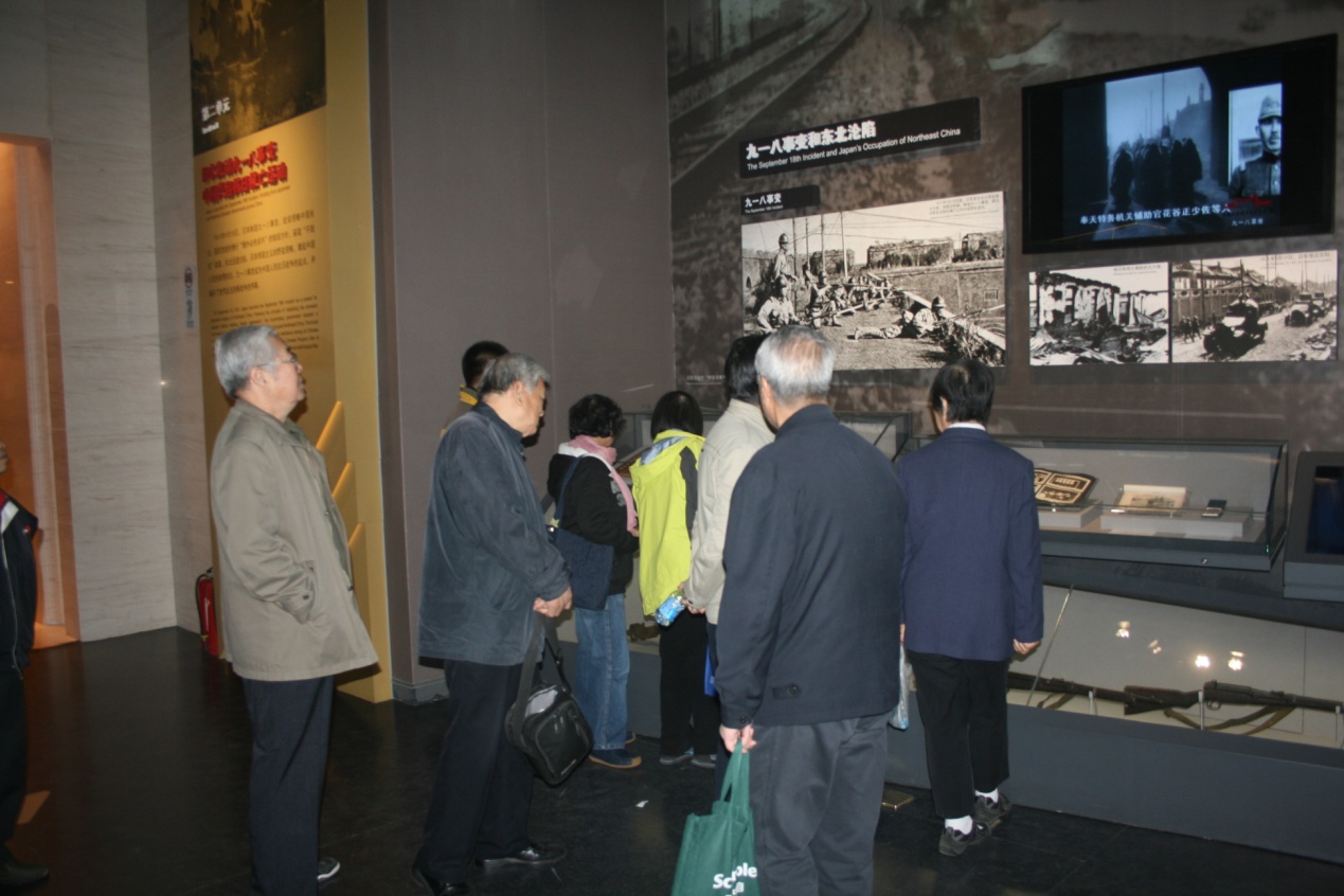 在纪念馆里,老党员们认真观看了展出的大量的珍贵历史照片及重要历史文物。从卢沟桥事变,到东北三省沦陷,到国共合作、南京大屠杀,再到抗战的各大战役,直到日本无条件投降,大家看到了自己落后挨打的惨痛,看到了全国上下一致抗战的团结,看到了我们从挨打到反攻胜利的激动。抗日战争是我国反侵略战争的第一场胜利,是我国近代史的一个重要的转折点,它让我们看到了中国人民的力量,看到了华夏民族的强大凝聚力,看到了中华民族伟大复兴的希望。