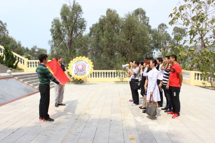 最后,在馆员的带领下,大家来到烈士陵园敬献花圈,重温入党誓词,在烈士墓碑下祭奠长眠于此的先烈英灵。