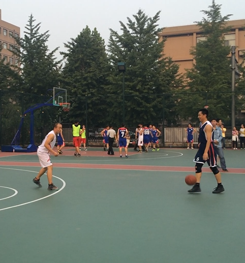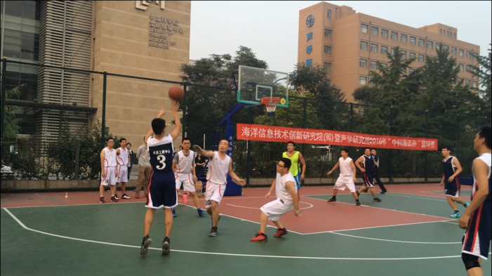 比赛一开始双方队员就快速进入状态,超声技术中心队的进攻打得有条不紊,内外结合,多点开花,依靠其前锋的强行突破以及开场命中率不错的三分球频频得分。水声工程中心队及时采取应对措施,采用联防战术,加强内线的防守和后场篮板的保护,有效地限制了对方前锋的突破得分;进攻端水声工程中心队利用掩护和反跑寻找空间进行投篮,球传导得十分流畅,获得了许多不错的得分机会。比赛中双方队员发挥出色,半场就打出27:32的高分,水声工程中心队暂时落后。