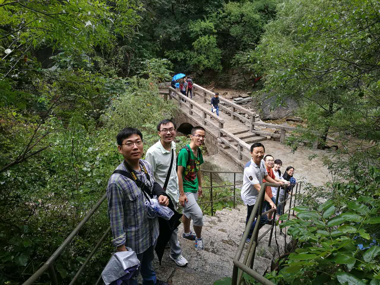 都说上山容易下山难,蒙蒙天空突然又下起了淅淅沥沥的小雨。所幸大家准备充分,都带了雨伞,相互照应,一路也其乐融融。出了景区大门,回头望去,这情,这景,岂不正应了王维的“空山新雨后,天气晚来秋”?