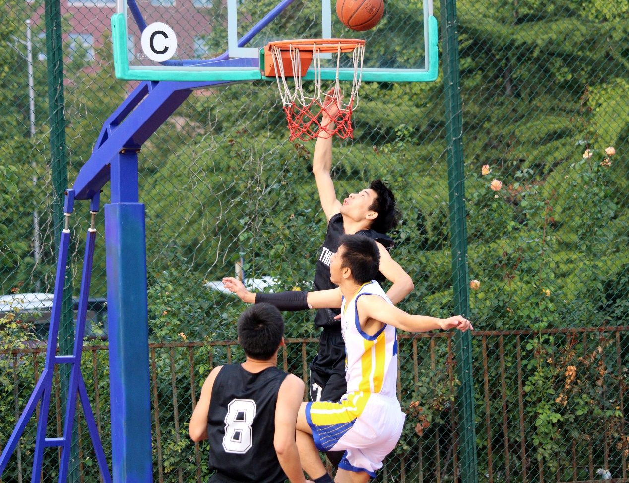 获得B组第二的语言声学实验室在四强赛中遇到了A组第一的水声工程中心,对方在A组以三战全胜的战绩挺进四强,队伍风格偏快攻,队员速度快、体能好、投篮准,是一个非常强劲的对手。语言声学实验室针对对方的特点,采用盯人防守以限制对方球员的快速进攻,但是在开局阶段没有很好的运转球,几个不应有的失误给了对方反击的机会,分差被一下拉大,虽然在接下来的几节中通过提高防守强度,打进攻成功率将分差缩小,但是最后一节体能下降,没能实现翻盘,遗憾的告别了冠军争夺战。