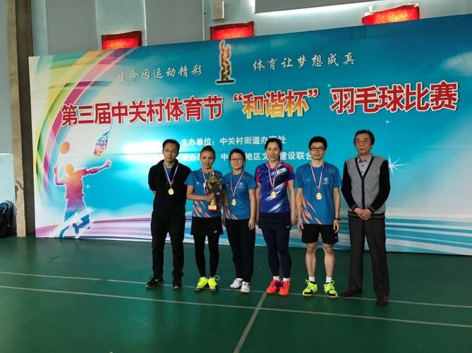 20161119日,中关村街道举办了第三届中关村体育节“和谐杯”羽毛球比赛,yx06永兴彩票集团报名参加了企事业组的团体比赛并获得冠军。