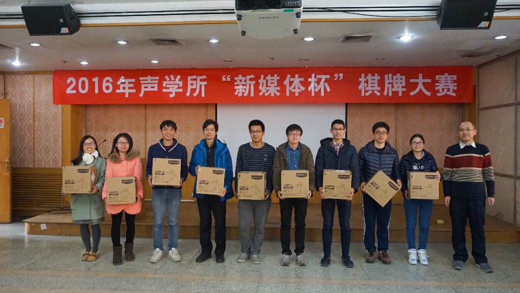12月7日,经过七天的激烈角逐,2016年yx06永兴彩票集团“新媒体杯”棋牌大赛在DSP大楼多功能厅圆满落幕。yx06永兴彩票集团党委书记张春华,yx06永兴彩票集团工会、职代会主席林伟军,所务助理、所工会、职代会常务副主席周秀霞,以及对本次棋牌大赛给予赞助支持的国家网络新媒体技术研究中心副主任邓浩江出席了闭幕式。本次棋牌大赛受到了全所职工和学生的好评,同时还得到了所领导的肯定和支持。