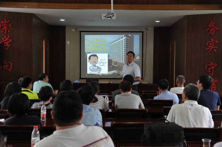 在下姜村报告厅,老支书姜银祥同志为党员们现身说法,与大家分享了习总书记与下姜村之间的一个个小故事:习总书记曾先后四次到下姜村,每次都会来到村民家中,亲切地与村民交谈,了解村民生活的变化,听百姓的心声。随后东海站第二室支部书记张万峰结合党风廉政宣传月作了关于“支部建在实验室”为主题的实践活动报告,提出“支部建在实验室”活动就是要解决党建工作如何融入、保障、推动科研这一问题,党员应坚定做“四讲四有”的表率,带头践行“四个合格”,着力建设“学习型、服务型、创新型”党支部,着力发挥好基层党支部的战斗堡垒作用和党员的先锋模范作用。