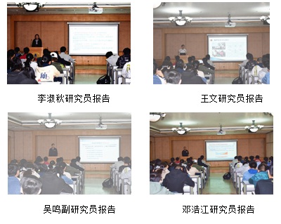 李淑秋研究员、王文研究员、吴鸣副研究员和邓浩江研究员作学科前沿报告,分别介绍了水声学、超声学、音频科学以及信号科学的最新发展和研究成果。