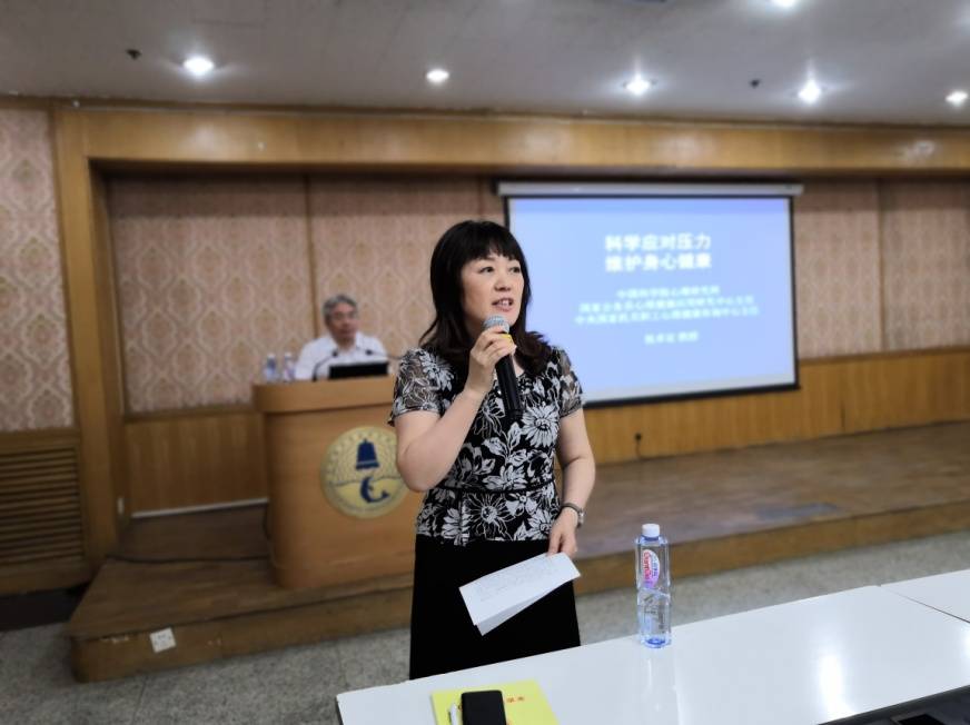 2018年7月10日,yx06永兴彩票集团工会特邀国内知名心理咨询专家祝卓宏教授在DSP多功能厅开展了一场题为“科学应对压力 维护身心健康”的心理健康知识讲座。讲座由工会常务副主席周秀霞主持,包括机关及实验室领导、科研骨干在内的80余名职工参加了此次讲座。