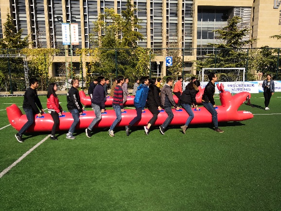集体项目路上龙舟考验的是团队的协作能力,大家需要步调一致才能取得最终的胜利,参赛选手们斗志昂扬地齐声喊着“一二一”或者“左右左”的口号,齐步向终点迈进,脸上洋溢着胜利的喜悦,划龙舟项目既放松科研的疲惫,也能够增进团队协作的默契,是广受好评的运动项目。