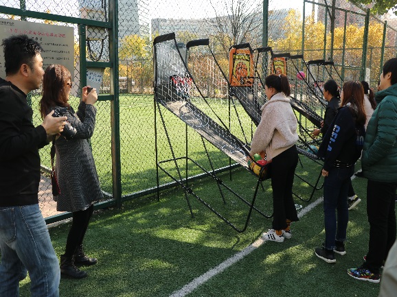 最考验个人瞄准技能的就是飞镖了,因为飞镖顶端的配重较重,所以掷飞镖的时候很难命中,甚至有的同学掷出的飞镖出现脱靶的情况,但是飞镖项目是最吸引人的活动,也是排队人数最多的项目,大家踊跃参加,都想在这个最考验技能的项目上一较高下