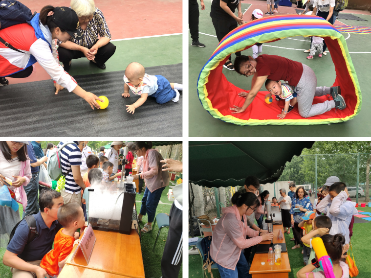 根据孩子们不同的年龄阶段和活动特点,本次亲子活动划分为0-3岁区域、4-6岁区域、7-12岁区域,设计了丰富多彩的节目和游戏,运动类的有快乐溜溜布、东南西北跑、车轮滚滚、快乐圈圈、趣味投篮、巧接彩珠、抖甩乒乓球、背夹球、快乐跳绳等;休闲类的如儿童钓鱼、积木、动物纸杯画、空气黏土等。游戏过程中,孩子和家长的欢声笑语不绝于耳。