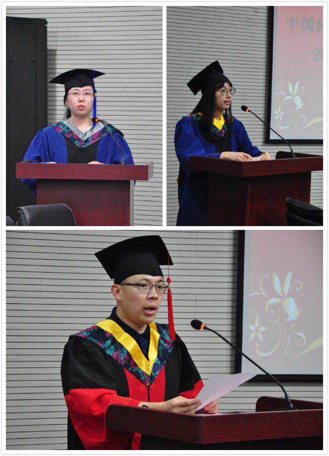 毕业生代表博士生崔杰和硕士生刘倩、姚心悦分享和回顾了在东海站学习期间的成长与收获,表达了对一路陪伴的导师、家长和同学们的深深感谢,对东海站的感激和留恋,以及对未来人生征程的期待与自信。全体毕业生集体起立鞠躬致敬培养他们的各位导师。预祝东海站的毕业生们前程似锦、鹏程万里,走上更加广阔的舞台!