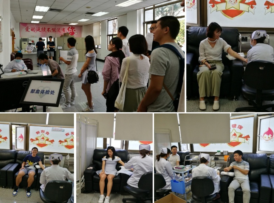 北京的初秋,天气依然炎热,经过精心准备,9月6日,综合办公室工作人员带领12位同志前往北京市红十字血液中心进行献血。朝气蓬勃的青年学生和职工在紧张的学习以及忙碌的科研工作之余,积极踊跃地前来献血。经过严格筛选最后有10位同志合格,累计献血2000CC。