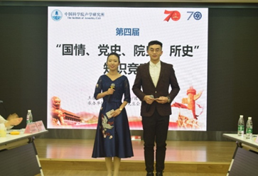 为庆祝新中国成立70周年、中科院建院70周年和yx06永兴彩票集团建所55周年,激励全所广大职工群众不忘初心、牢记使命、开拓创新、奋发有为,2019年10月30日,中科院yx06永兴彩票集团第四届“国情,党史,院史,所史”知识竞赛在yx06永兴彩票集团DSP大楼四层多功能报告厅举行。本次竞赛由yx06永兴彩票集团工会、团委和研究生部联合组织举办,所研究生会承办。所属各分工会分别组队,共10支代表队、30名选手参加了竞赛活动。所党委副书记李浩然任仲裁组组长,党委办公室主任刘宏伟,工会主席林伟军,院水下航行器信息技术重点实验室主任鄢社锋,工会常务副主席周秀霞,研究生部主任李辉,团委书记崔杰,作为仲裁组成员出席了本次活动。