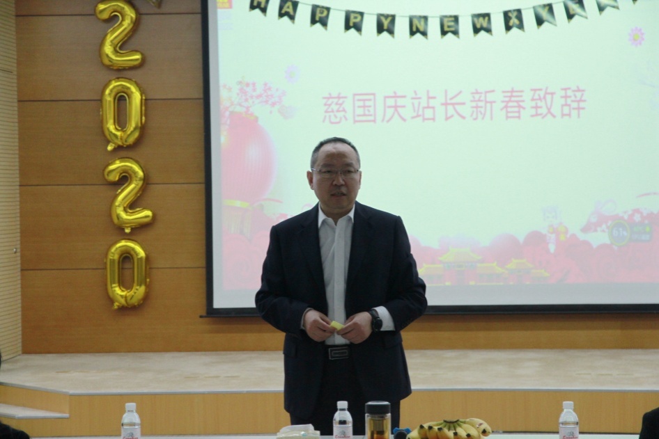 慈国庆站长发表了新年致辞。慈国庆表示,一年来,我们不忘初心、牢记使命,用汗水浇灌收获,以实干笃定前行。党的建设扎实推进;传统科研方向变革创新,新兴研究方向不断突破;水声相关设备研发取得重大标志性进展;科研经费体量再创历史新高;公共研发平台建设和产业化工作取得新进展;人才团队建设、组织文化建设、规范化建设再上新台阶;保障中心项目获得中科院经费支持,即将开工建设。2020年是“十三五”收官之年,也是“十四五”开局起步的关键之年,我们将继续坚持北海站“强基固本”工作主题,深化拓展水声学和空气声学研发领域,扎实推进公共研发服务平台建设,探索中科声远体制机制创新,不断提升党建和组织文化,开工建设红岛园区人才公寓,扎实进取,奋发有为,努力实现新时期更好更快发展。