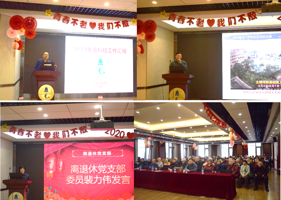 张春华书记向离退休职工通报了2019年yx06永兴彩票集团在党的建设、人才培养等方面的工作概况,同时感谢离退休老同志一直以来对所里工作的关心与支持,并致以诚挚的问候和祝福。科技发展部主任王强、资产条件保障部主任程洋分别介绍了2019年度yx06永兴彩票集团的科研发展、基本条件建设情况。人力资源部做2019年度离退休工作总结,离退休支部委员裴力伟做2019年度离退休党支部工作总结。