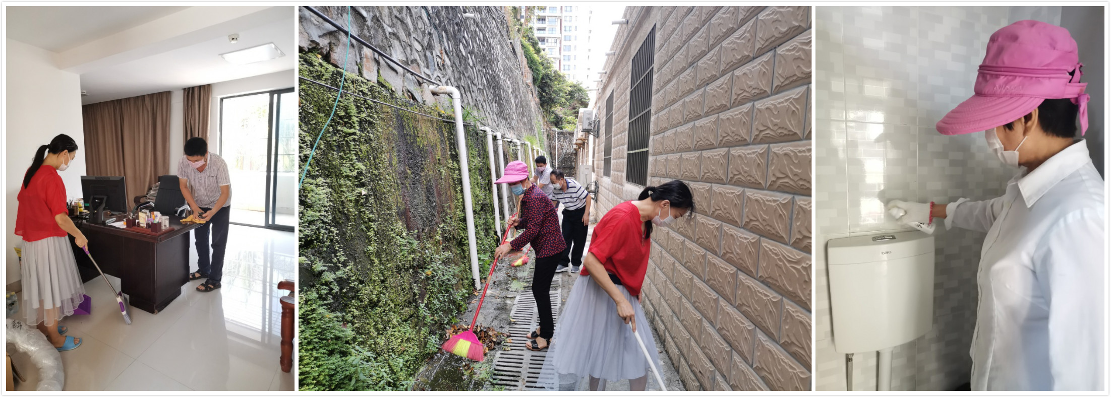 南海站卫生健康大行动首次活动于2020年3月27日下午拉开序幕,海口本部、三亚试验站和南海实验基地三地联动。在站长甘维明同志、党委书记张镇迈同志的带领下,各部门职工积极响应,分工合作,一起对各部门办公室及其他公共区域进行全面清洁,做到消除卫生死角,实现办公环境干净整洁,物品摆放整齐,窗明几净,无病媒生物滋生。经过一番热火朝天的清理,工作环境焕然一新。