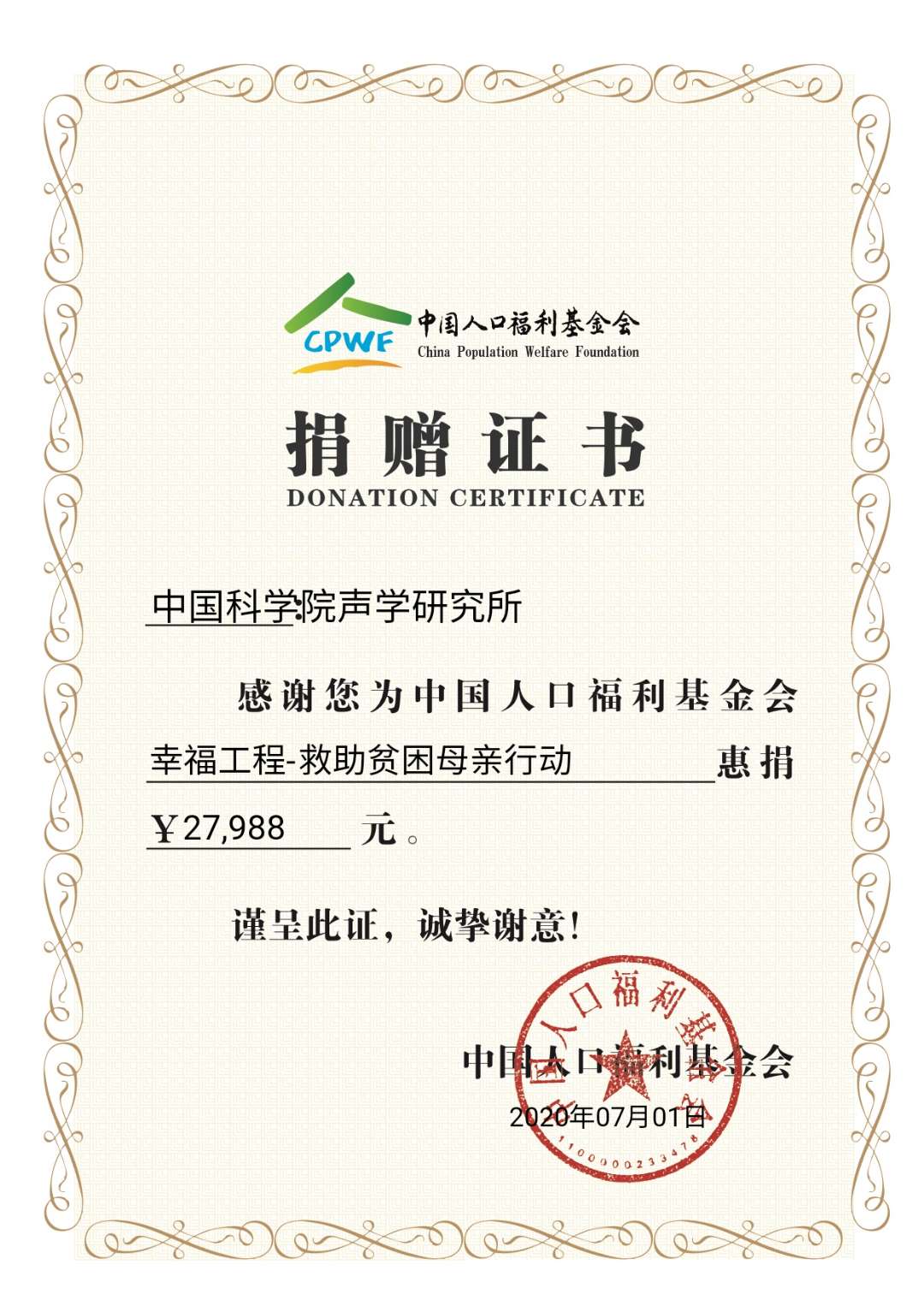 近期,根据《中国科学院人口和计划生育委员会办公室关于开展2020年“幸福工程——救助贫困母亲行动”捐款活动的通知》(科人口计生办字〔2020〕1号)精神,助力国家打赢脱贫攻坚战贡献一份力量,yx06永兴彩票集团组织开展了“幸福工程—救助贫困母亲行动”捐款活动。