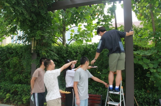红岛新园区自2017年建成启用后,为打造绿色环境,建设生态家园,大家在园区内种植了葡萄、石榴、无花果等各类树苗,经过悉心呵护照料,如今,适逢成熟季节,成排的葡萄架上挂满了一串串晶莹剔透、汁水饱满的葡萄,十分诱人。在采摘现场,大家喜笑颜开,尽情享受采摘的快乐。手捧着一盘盘果实,采摘过后,职工们在科研楼文化活动区一起分享果实,紫色的葡萄被榨成果汁,细品一杯,甜美清香。在分享果实的同时,大家畅谈工作和生活,职工们在沟通交流中增进了对彼此的了解,深化了情感。