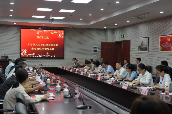 2020年9月15日上午,上海市文明单位暨平安单位考核组(以下简称考核组)一行10人,对东海研究站持续创建上海市文明单位进行了实地考察。考核组成员包括中科院上海分院分党组书记、副院长、沪区党委书记李正华,上海市科技工作党委宣传处高源,以及上海分院相关职能部门、上海市公安局文保分局、兄弟院所的相关专家。东海研究站站长许伟杰,党委书记张伟才,副站长刘晓隽,党委副书记、纪委书记丁培及科室负责人、科研骨干、党支部书记近20人参加了考核会。会议由上海分院党群处处长朱熊主持。