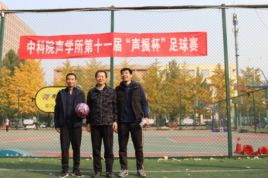 2021年10月20日,天空瓦蓝瓦蓝的,偶尔飘来一朵小小的白云,天空下绿色的足球场上热闹非凡。在这秋风习习的深秋季节里,为引导广大职工参与全民健身活动,充分贯彻全民健康理念,以健康的体魄投身科研、强身健体,同时为我所职工、学生提供一个锻炼的平台,彰显科研人员风采,由所工会举办、足球协会承办的第11届“声振杯”足球赛开幕。党委书记、副所长、工会主席倪宏,噪声与音频声学实验室主任程晓斌,超声学实验室主任陈德华,工会常务副主席周秀霞出席开幕式。