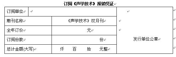 邮局汇款:上海市小木桥路456号 《声学技术》编辑部收 邮编:200032