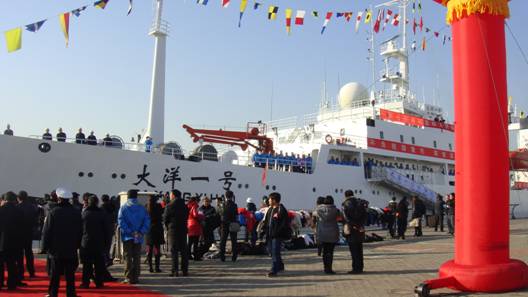 2011年12月11日yx06永兴彩票集团应邀参加了国家海洋局在青岛举行的“大洋一号”船凯旋活动。当天上午,执行我国大洋第22航次任务的“大洋一号”科考船缓缓停靠到了青岛奥帆中心码头,完成了“大洋一号”6.4万海里、9个航段的科考旅程。科考期间开展了海底多金属硫化物、多金属结合、深海环境、深海生物基因和深海生物多样性等多项涉及太平洋、印度洋和大西洋的海洋科学调查,尤其在热液硫化物的发现上取得了丰硕成果。