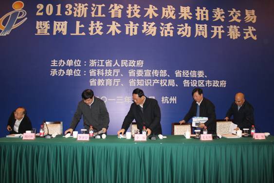 以“激活资源促创新加快交易促转化”为主题的2013浙江省技术成果拍卖交易暨网上技术市场活动周于11月16日至18日在杭州白马湖国际展览中心成功举办。浙江省委副书记、省长李强,副省长毛光烈出席了活动周的开幕式。中科院yx06永兴彩票集团东海站应浙江省科技厅的邀请,在中科院上海分院的带领下参加本次活动周的各项活动。