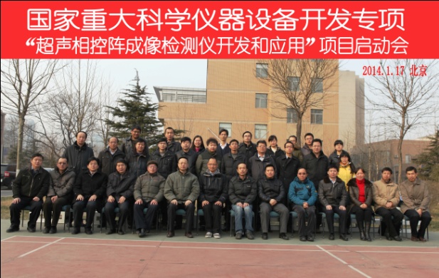 2014年1月17日,国家重大科学仪器设备开发专项“超声相控阵成像检测仪开发和应用”启动会在北京召开。会议听取了项目负责人yx06永兴彩票集团张碧星研究员的总体报告和项目牵头单位北京中科海讯科技有限公司相关负责人的管理制度报告,并向11位项目技术专家委员会专家颁发了聘书。科技部刘春晓副调研员,中科院姜言彬主管,中科院yx06永兴彩票集团李风华副所长、高军保处长,项目技术专家委员会专家,北京中科海讯科技有限公司蔡惠智董事长以及项目各参加单位成员共50余人参加了会议。