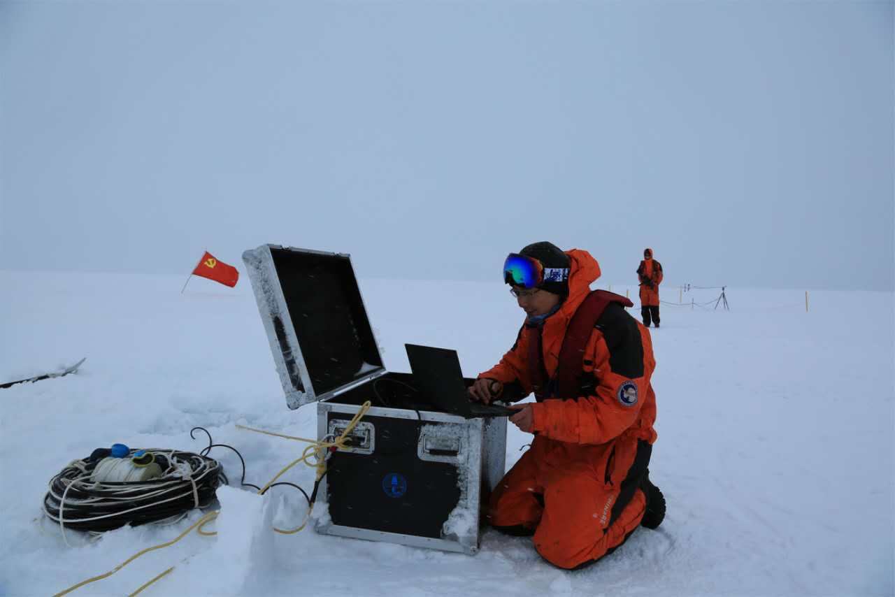 本次科考遇上了连日的大风降雪,天气酷寒,狂风经常在海面上呼啸而过,停泊作业的“雪龙”号颠簸剧烈,考察人员的作业难度可想而知。在冰面上,为了操作设备方便,卫翀华博士经常脱掉防冻手套,徒手操作,并且克服了各种困难完成潜标、浮标的收放、信号采集设备的布放和数据的收集。本次科考首次进行了北冰洋地区冰下近程混响实验、中频水声通信实验和低频水声传播与测量实验,采集了大量关于海洋、水声及海冰物理方面的数据,为北极地区水下声学传播模型的检验提供了实测数据,取得了丰硕的成果,为北极区域的水声学调查研究做出了突出的贡献。