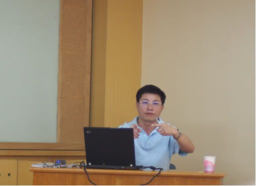 8月6日上午,我室郭成彬老师和来自美国North Dakota大学的曾正文博士分别做了题为“动车组空心轴超声探伤系统评介”和“CO2 phase transition induced acoustic velocity change in porous media”的报告。