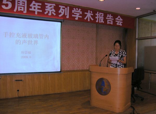 半个多世纪以来,应先生当之无愧地成为我国超声学的奠基人,也是我国超声诸多应用技术的开创者。这其中不仅有应先生的辛勤付出,也得益于他的学科布局的战略眼光和人才培养的经验智慧。应先生因为在学术上的成就,为科技工作做出的卓越贡献,受到人们的敬仰。科学时报曾经评价说:白首不问功名,只为超声事业。科学新闻杂志评价是:居高声自远,非是藉秋风。最后李淑秋引用马大猷先生的一句话 “一直未有对超声做系统研究者,有之则从应崇福院士起”开始了今天的报告会。