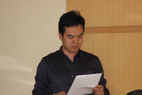 9位同学依次进行了研究工作的汇报,报告主题主要有:换能器的数值仿真、谱元法等算法研究、高速数据采集卡的硬件设计、HIFU声场中的时间反转聚焦建模、隔声体的数值仿真及优化设计等等。同学们各自介绍了自己的研究背景、研究进展与结论以及下一步的研究计划等。评委老师们对同学们的汇报内容逐个进行了细致的点评,肯定了大家的成绩和进展,指出了其中的错误与不足,并对下一步的研究计划给出了建议。